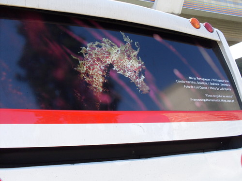 A partir de dia 1 de Agosto poderão ser vistas as imagens sobre os mares portugueses - um cachalote e um cavalo-marinho, do fotógrafo de vida selvagem Luís Quinta - nos autocarros rápidos Peniche-Lisboa, nºs 4145 e 4152.
