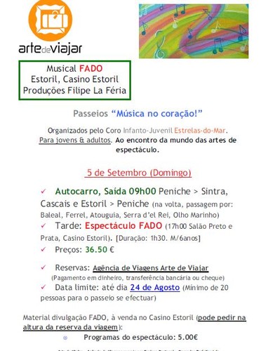 tão abertas as incrições para o espectáculo FADO, que está a decorrer no Casino Estoril, das Produções Filipe La Féria.