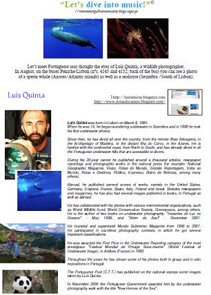 Como noticiamos anteriormente, as duas imagens (um cachalote/Açores e um cavalo-marinho/Sesimbra) fazem parte da campanha "Vamos mergulhar na música!" ,com o objectivo de celebrar os oceanos.