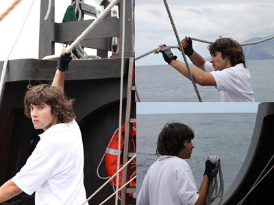 - "Trainees working on the deck" -Tripulação trabalhando no convés