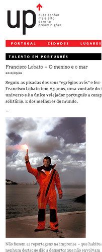 A Revista "Up-Magazine", revista de bordo da TAP publicou o artigo "O menino e o mar" sobre Francisco Lobato.