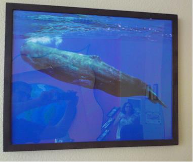 Está exposto na parede a fotografia de Luís Quinta de um cachalote (Physeter macrocephalus)/Açores.
